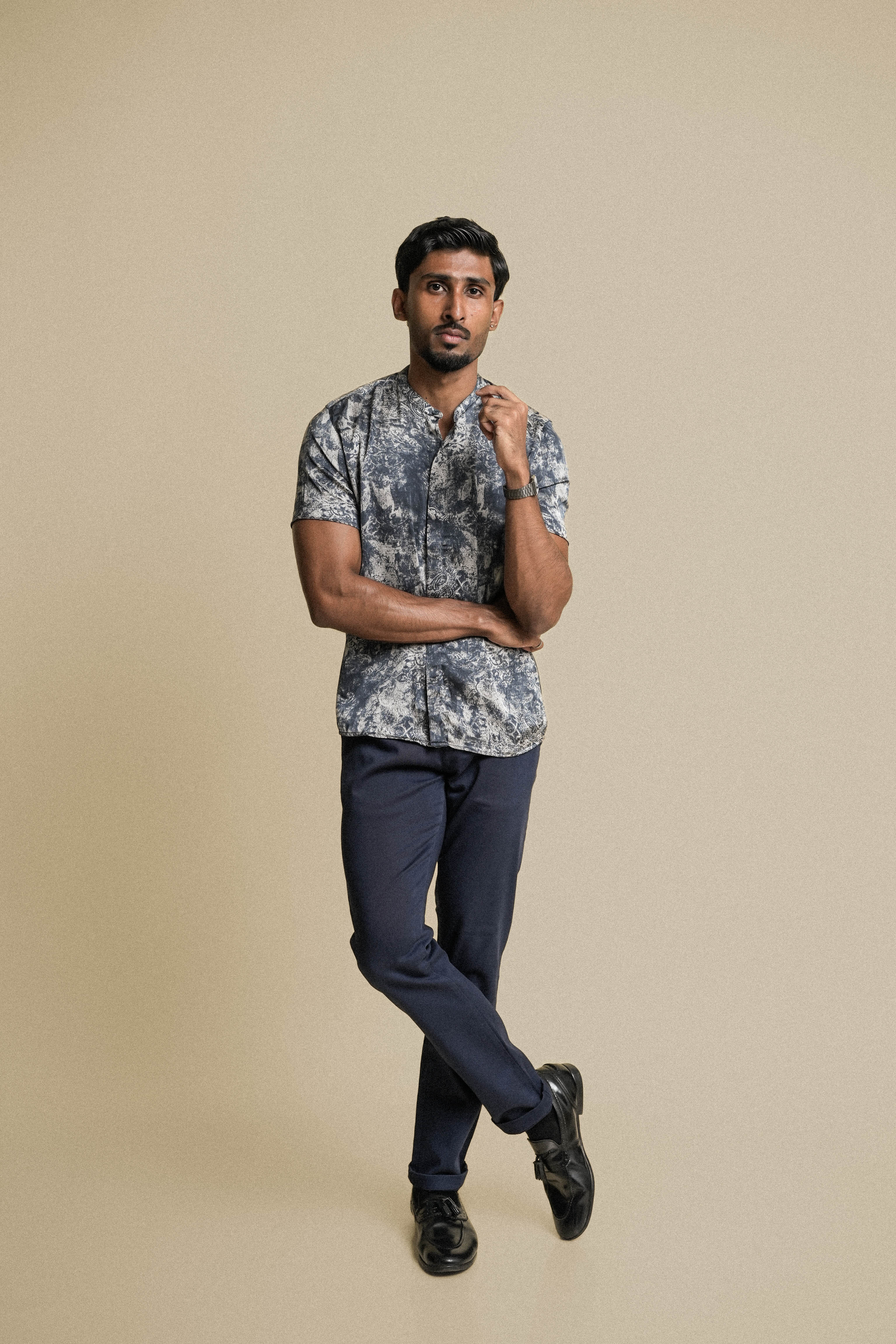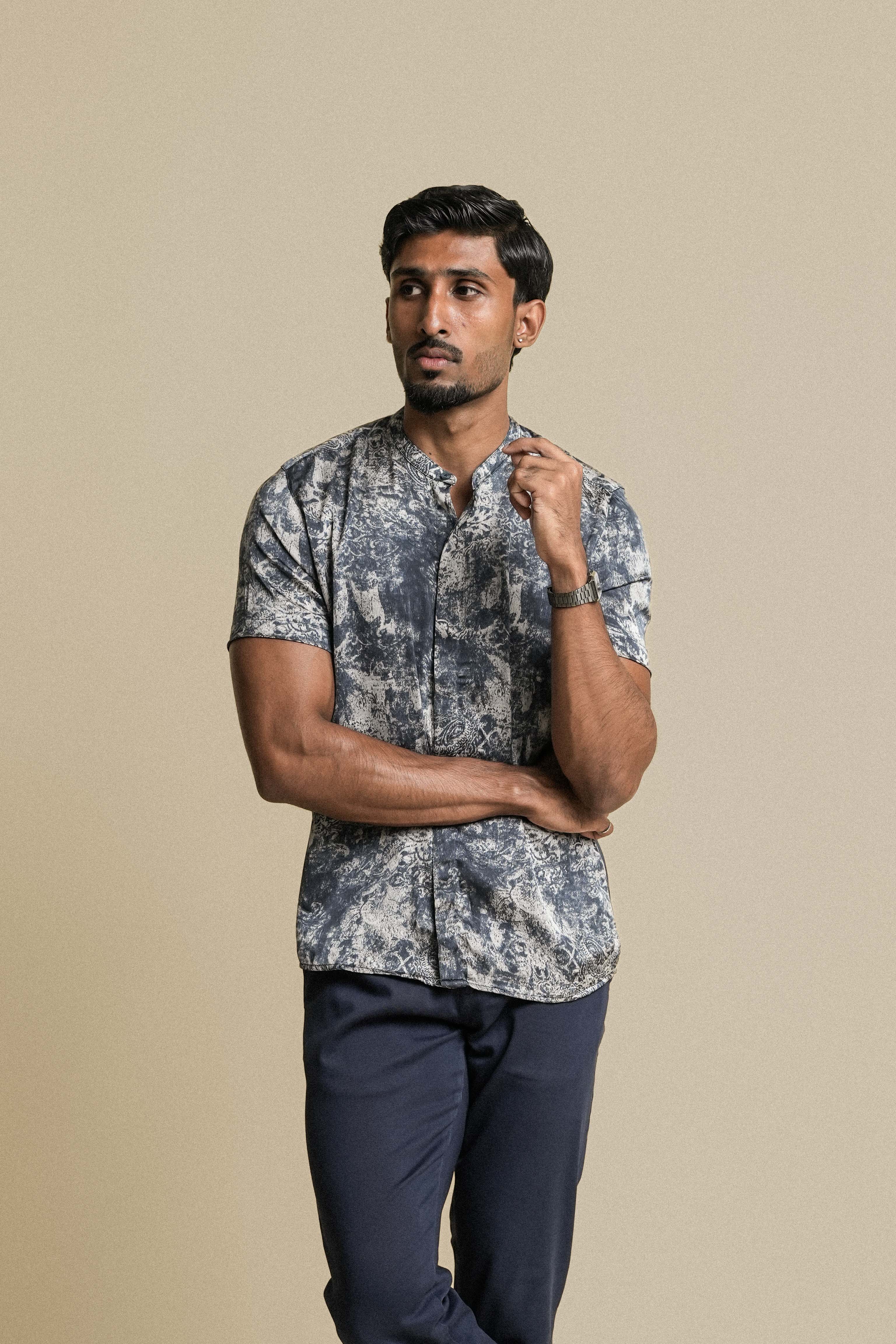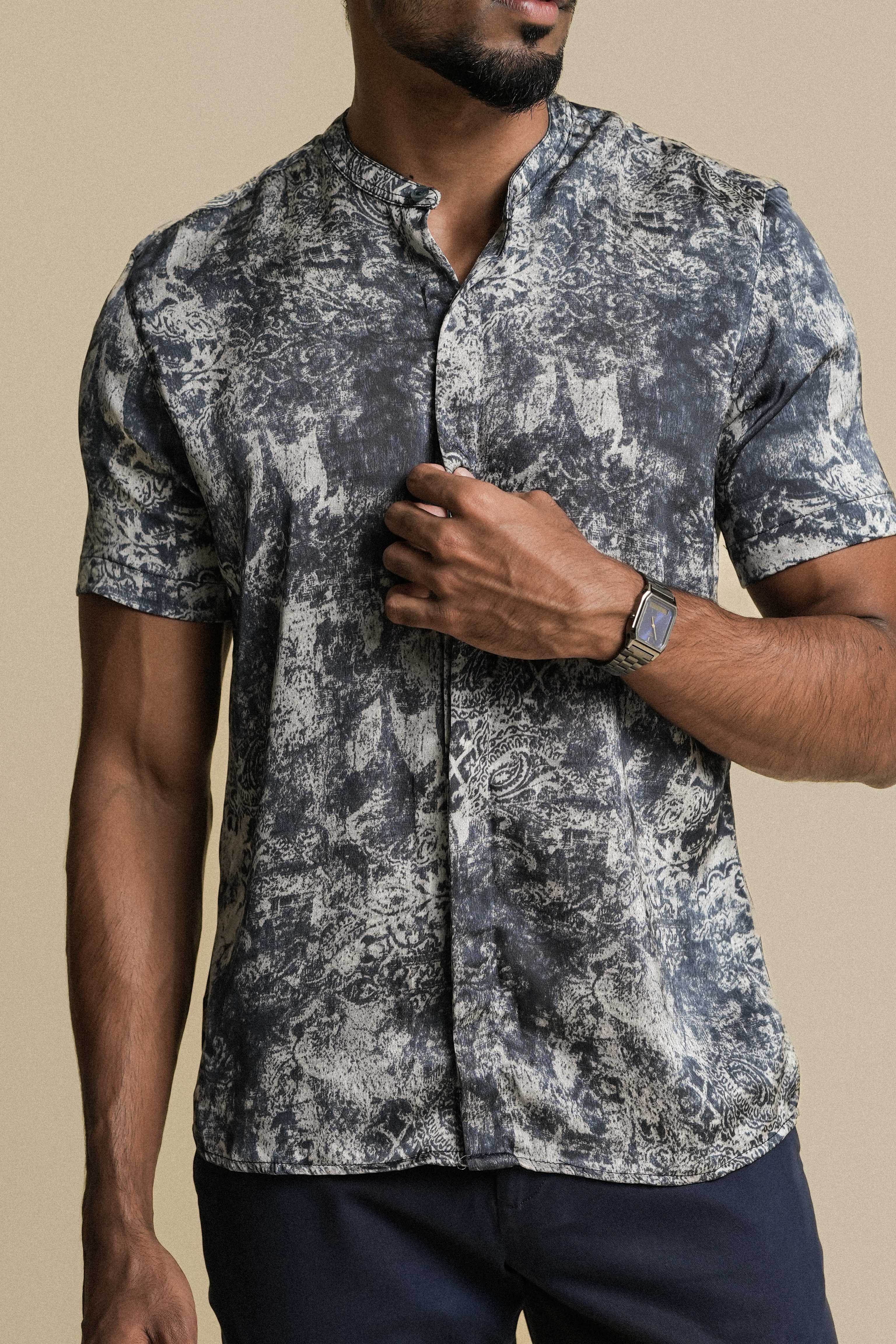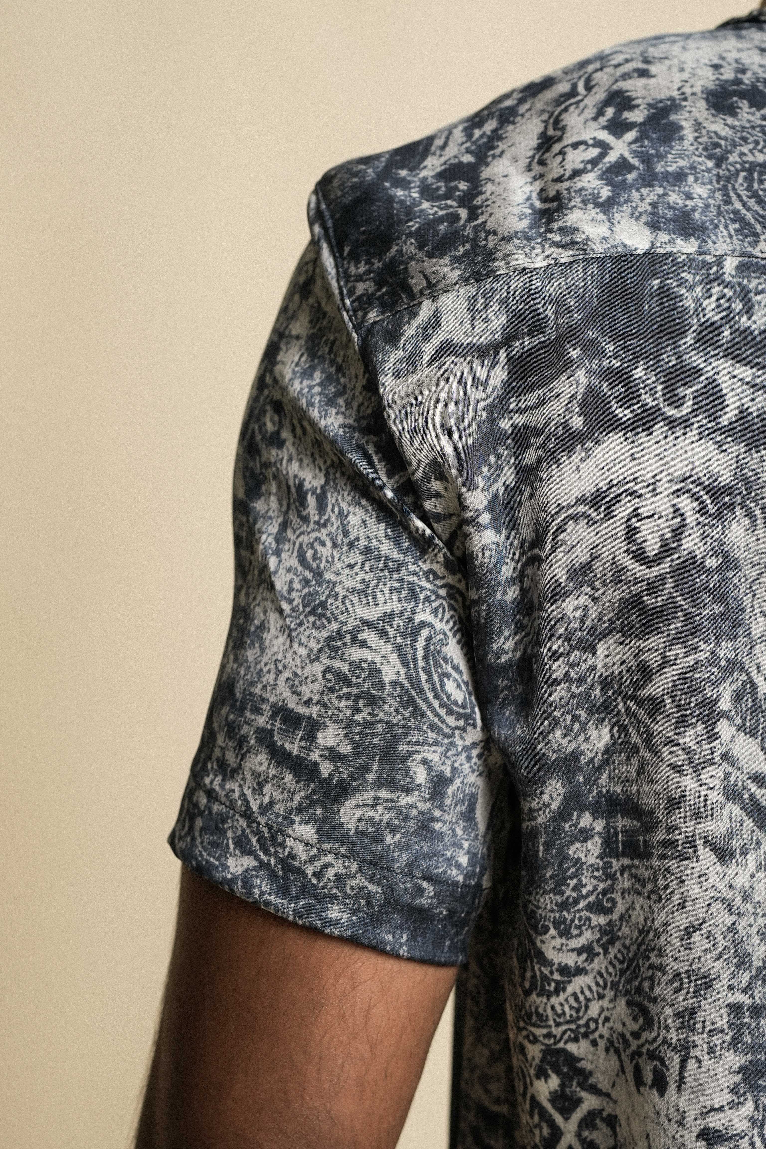 Abstract artistry in comfortable short sleeves. Perfect for warm-weather celebrations and balmy evening events. Daytime gatherings to rooftop receptions, seamlessly.